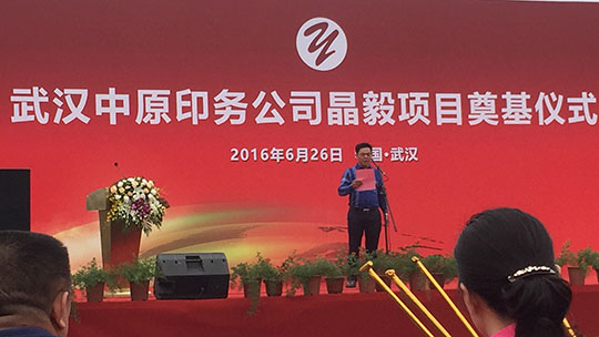 10:00整奠基儀式隆重開始,首先由武漢中原印務(wù)公司董事長致開幕詞,對東西湖區(qū)各位領(lǐng)導(dǎo)及相關(guān)的領(lǐng)導(dǎo)蒞臨現(xiàn)場表示最熱烈的歡迎和最衷心的感謝!