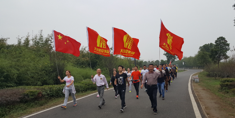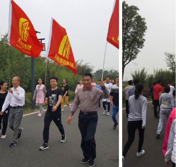 “1234,1234,大集,大集,齊心協(xié)力,奮勇向前,只爭(zhēng)朝夕……”整齊劃一的吶喊聲和腳步聲迎面而來(lái),鮮艷奪目的企業(yè)司旗,年輕似火的團(tuán)隊(duì)成員一一盡現(xiàn)眼簾,大家表現(xiàn)得十分活躍,動(dòng)作協(xié)調(diào),緊密配合,處處可以感受到團(tuán)隊(duì)合作的力量。在這里,在此時(shí),正在如火如荼的上演一場(chǎng)熱身賽。這里是后官湖濕地公園的跑道上,也是湖北大集建設(shè)集團(tuán)為參加本月底半馬比賽而組織的集結(jié)地。