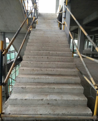踏上樓梯,腳下的臺(tái)階邊角順直,角度方正平整,線條清晰,接頭平整,觀感度較好。