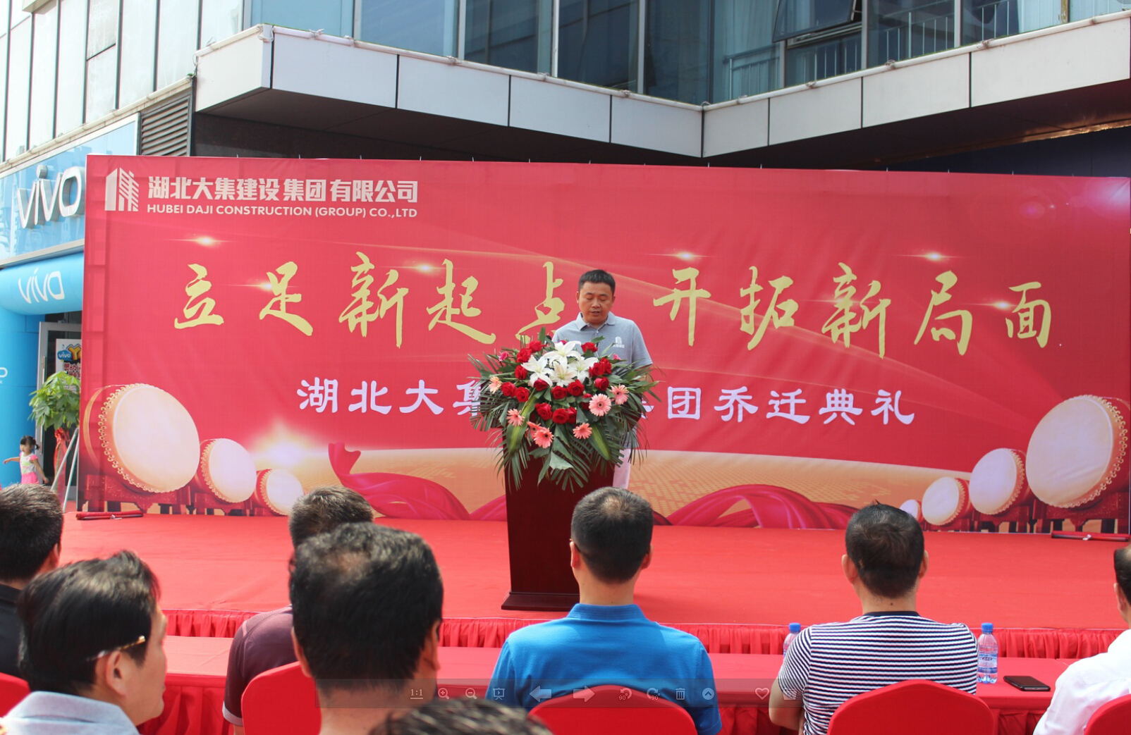 10:18分,在激情高漲的鑼鼓聲中,湖北大集建設(shè)集團喬遷典禮正式開始。首先,由集團董事長徐濤發(fā)表講話,董事長再一次向蒞臨現(xiàn)場的各位政府領(lǐng)導(dǎo)、行業(yè)同仁以及來賓朋友表示歡迎和感謝,然后重點總結(jié)了自2003年改制以來集團的發(fā)展、壯大、收獲和成就,并表示集團將以此次喬遷為契機,繼續(xù)保持開拓進(jìn)取的積極狀態(tài)和務(wù)實求真的工作作風(fēng),在各級政府領(lǐng)導(dǎo)的支持下,各位同仁朋友的關(guān)心幫助下,努力創(chuàng)造更加輝煌的明天!