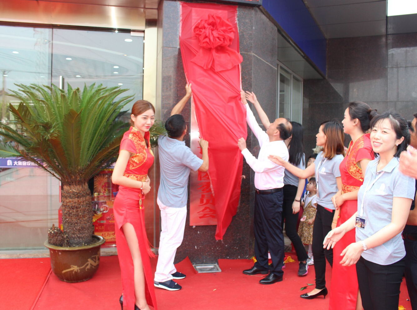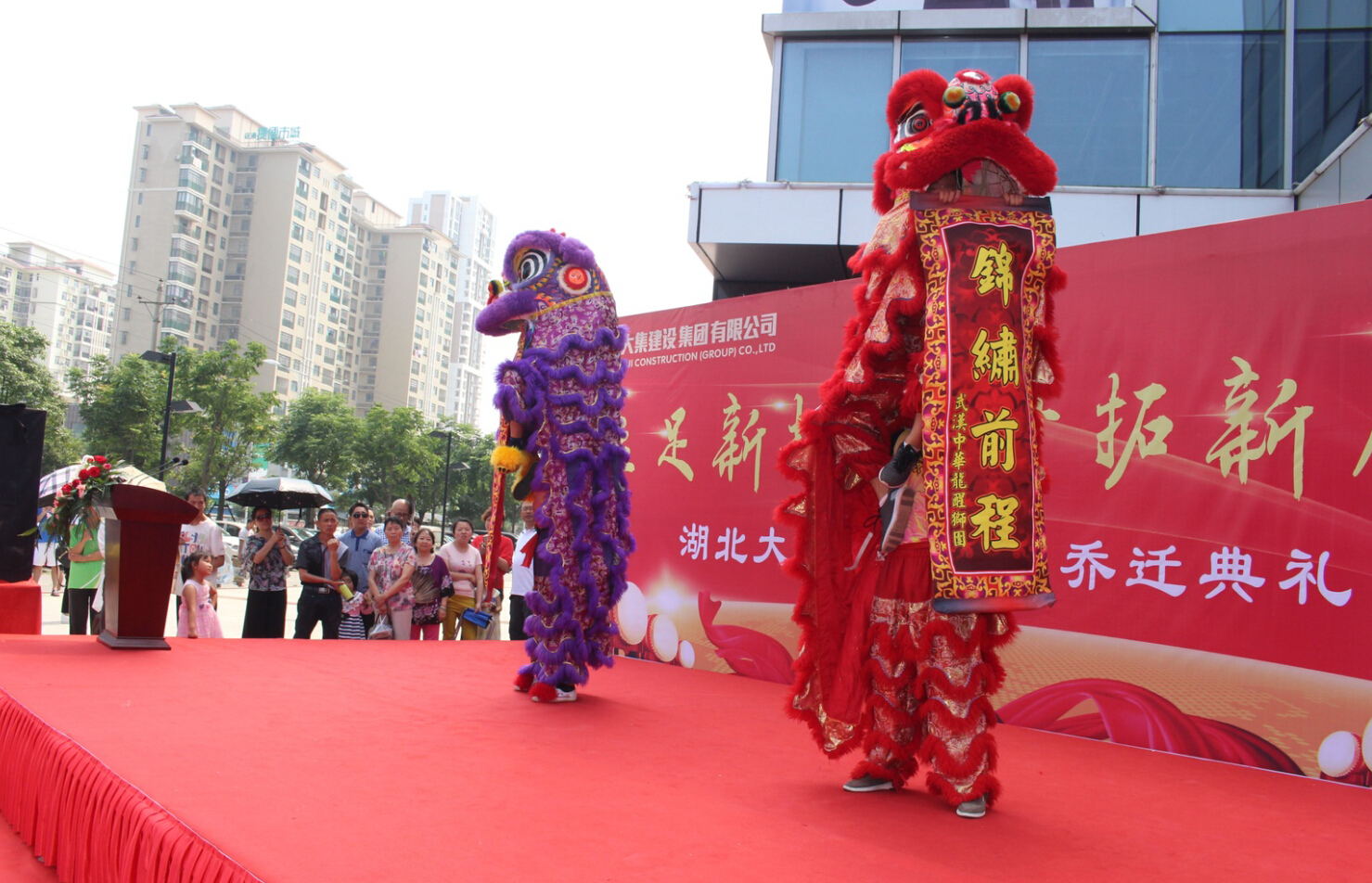 10:38分,當(dāng)徐董事長、街黨委曹書記共同攜手揭開中國共產(chǎn)黨湖北大集建設(shè)集團委員會的牌匾,總經(jīng)理徐遠(yuǎn)征、街工委王主任攜手揭開湖北大集建設(shè)集團有限公司的牌匾時,喬遷慶典的高潮環(huán)節(jié)正式開始!