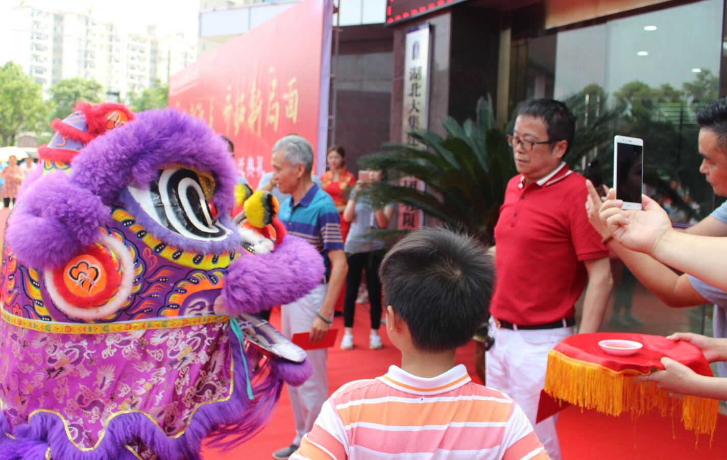 隨后,伴隨著兩頭威風(fēng)凜凜的雄師上場,現(xiàn)場呈現(xiàn)一片鑼鼓喧天、歡喜洋溢的熱鬧氣象!隨后公司兩位老領(lǐng)導(dǎo)徐家立先生和陳兆華先生為兩頭雄師點睛,寓意集團鴻運當(dāng)頭,盛世吉祥!