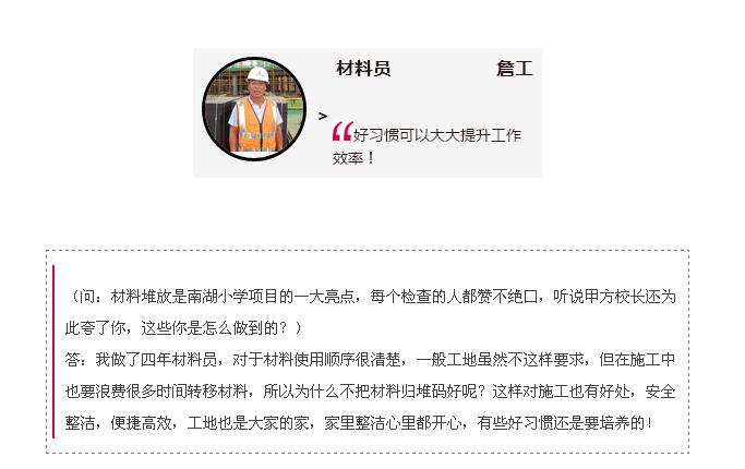 南湖小學(xué)項(xiàng)目是事關(guān)教育百年大計(jì)的重要民生工程,開(kāi)工以來(lái)不僅受到各級(jí)政府領(lǐng)導(dǎo)的熱切關(guān)注,也受到集團(tuán)領(lǐng)導(dǎo)的高度重視,自承接項(xiàng)目伊始,項(xiàng)目經(jīng)理徐家富就承諾:一定要把南湖小學(xué)項(xiàng)目做成集團(tuán)的樣本工程,創(chuàng)杯工程,讓社會(huì)和政府滿意的工程!短短三個(gè)月的時(shí)間,南湖小學(xué)項(xiàng)目就取得了不少成就,不僅受到政府各級(jí)領(lǐng)導(dǎo)的表?yè)P(yáng),也榮獲了集團(tuán)各職能部門的一致好評(píng),更讓他的承諾成功轉(zhuǎn)化為現(xiàn)實(shí)!