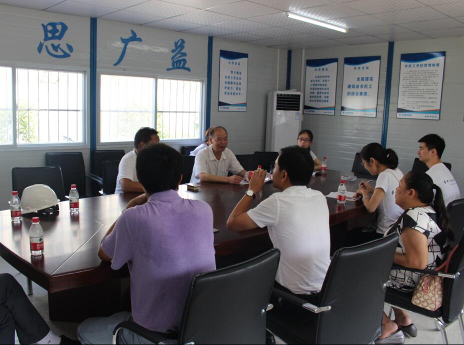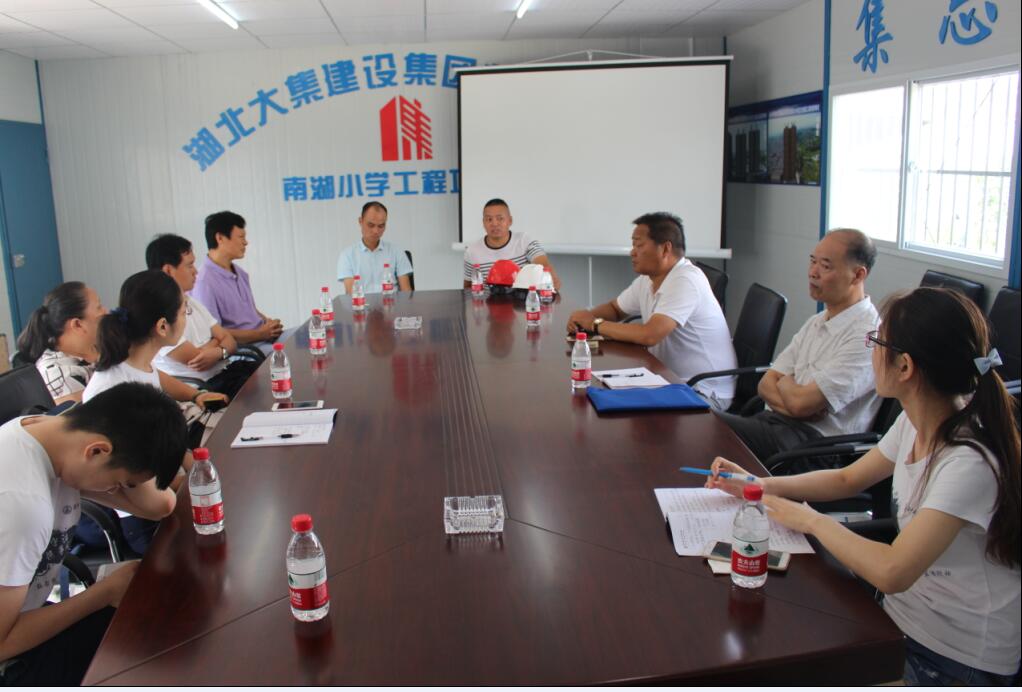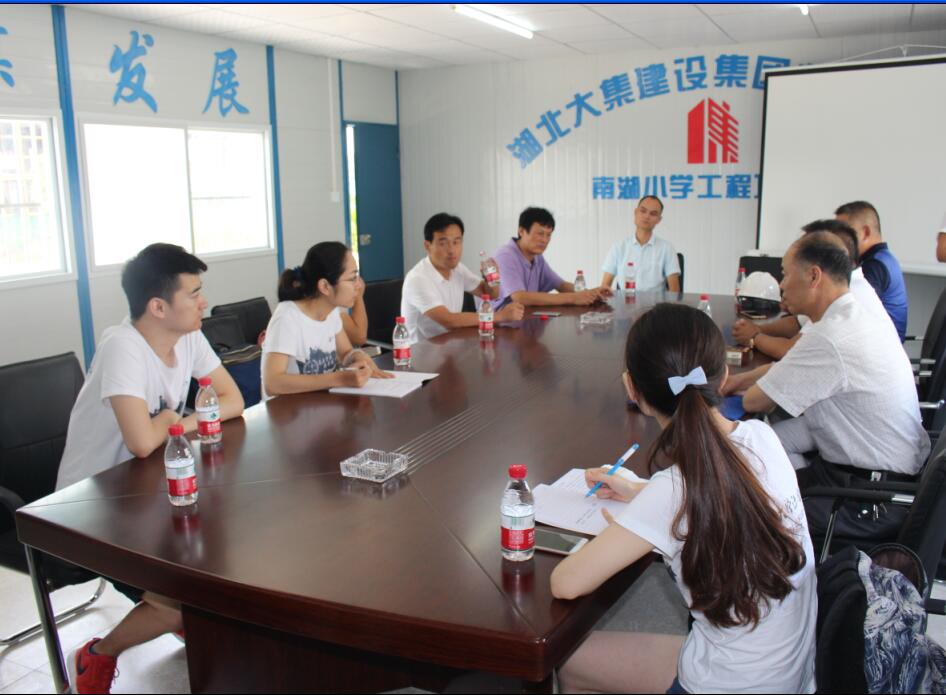大集街工會主席劉浩首先對調(diào)研組走進大集街表示熱烈歡迎,也對省工會聯(lián)合學校團體組織的此類公益活動表示大力支持,同時也解釋了選擇南湖小學項目作為調(diào)研對象的原因,對湖北大集建設(shè)集團一路走來的不斷成長和完善發(fā)展表示肯定,對大集建設(shè)集團高標準的項目建設(shè)和規(guī)范化的用工制度表示嘉獎!