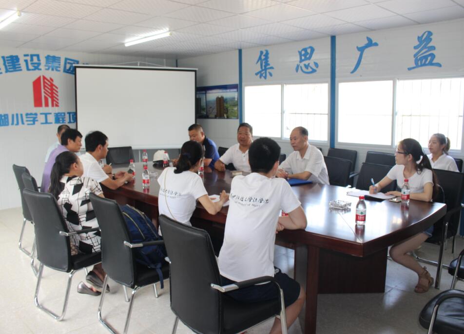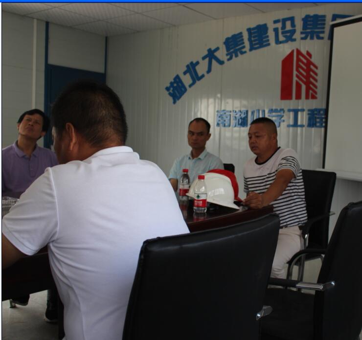8月25日,大集街政府領(lǐng)導引領(lǐng)由湖北省總工會和華中科技大學法學院師生組成的調(diào)研小組蒞臨集團南湖小學項目進行調(diào)研考察,重點對項目農(nóng)民工管理及農(nóng)民工權(quán)益問題進行考察,集團副總經(jīng)理徐家富,法務(wù)部部長李漢毛,工程管理部部長黃國鋒參與會議,并對調(diào)研組提出的問題進行一一解答!
