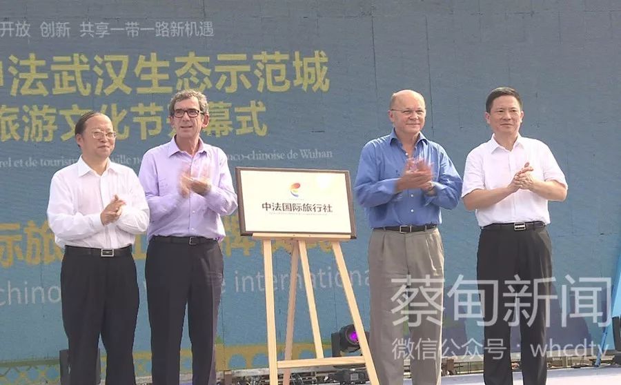 法國(guó)駐華大使黎想、法國(guó)生態(tài)與團(tuán)結(jié)化轉(zhuǎn)型部城市可持續(xù)發(fā)展協(xié)調(diào)人克里斯汀?樂(lè)維、副市長(zhǎng)龍良文、蔡甸區(qū)委書記、中法武漢生態(tài)示范城管委會(huì)主任劉子清共同為“中法國(guó)際旅行社”揭牌。