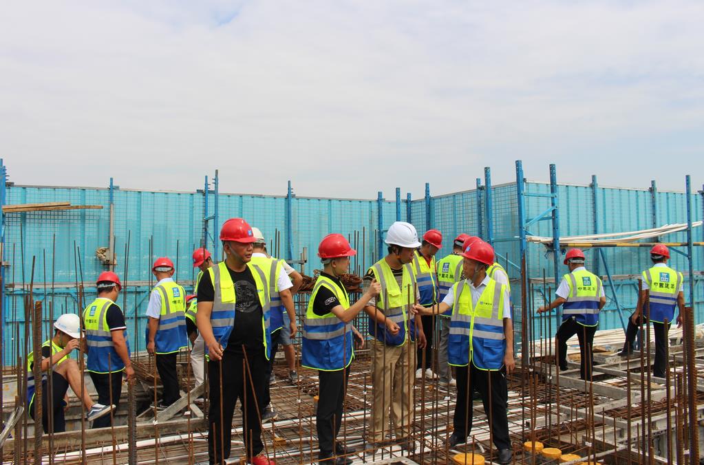 在楊泗港項目現(xiàn)場,大家近距離了解了爬架的工作原理、拼裝方式以及布設情況,并仔細觀摩了鋁模的施工工藝以及支撐體系,通過與現(xiàn)場講解人員的溝通,對鋁模技術的應用有了更深入的認識。此次的觀摩學習讓各位項目經理及施工員受益匪淺,對新工藝也有了更直觀、更深刻的感受和比較。