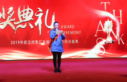 武漢花博匯總經(jīng)理助理卿尚波、運(yùn)營總監(jiān)黃艷為優(yōu)秀員工頒獎(jiǎng)