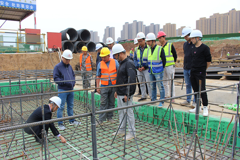 在項(xiàng)目部負(fù)責(zé)人的陪同下,徐副總一行深入項(xiàng)目施工現(xiàn)場(chǎng),分別對(duì)9#樓地下室止水鋼板施工、16#樓地下室底板鋼筋綁扎等進(jìn)行了嚴(yán)格的檢查,并對(duì)檢查中發(fā)現(xiàn)的問(wèn)題提出了整改意見(jiàn),要求項(xiàng)目部嚴(yán)格按照標(biāo)準(zhǔn)要求整改到位。