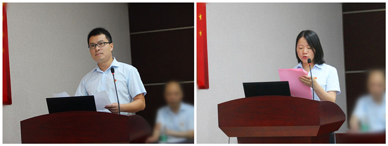 優(yōu)秀黨員代表彭輝、預(yù)備黨員鄧雪芬做了深刻的思想?yún)R報(bào)后,行政部兼法務(wù)部部長(zhǎng)李漢毛公布了集團(tuán)公司2019年第二季度項(xiàng)目績(jī)效考核結(jié)果,并對(duì)今年新修訂的項(xiàng)目績(jī)效考核制度實(shí)施情況進(jìn)行了總結(jié)。