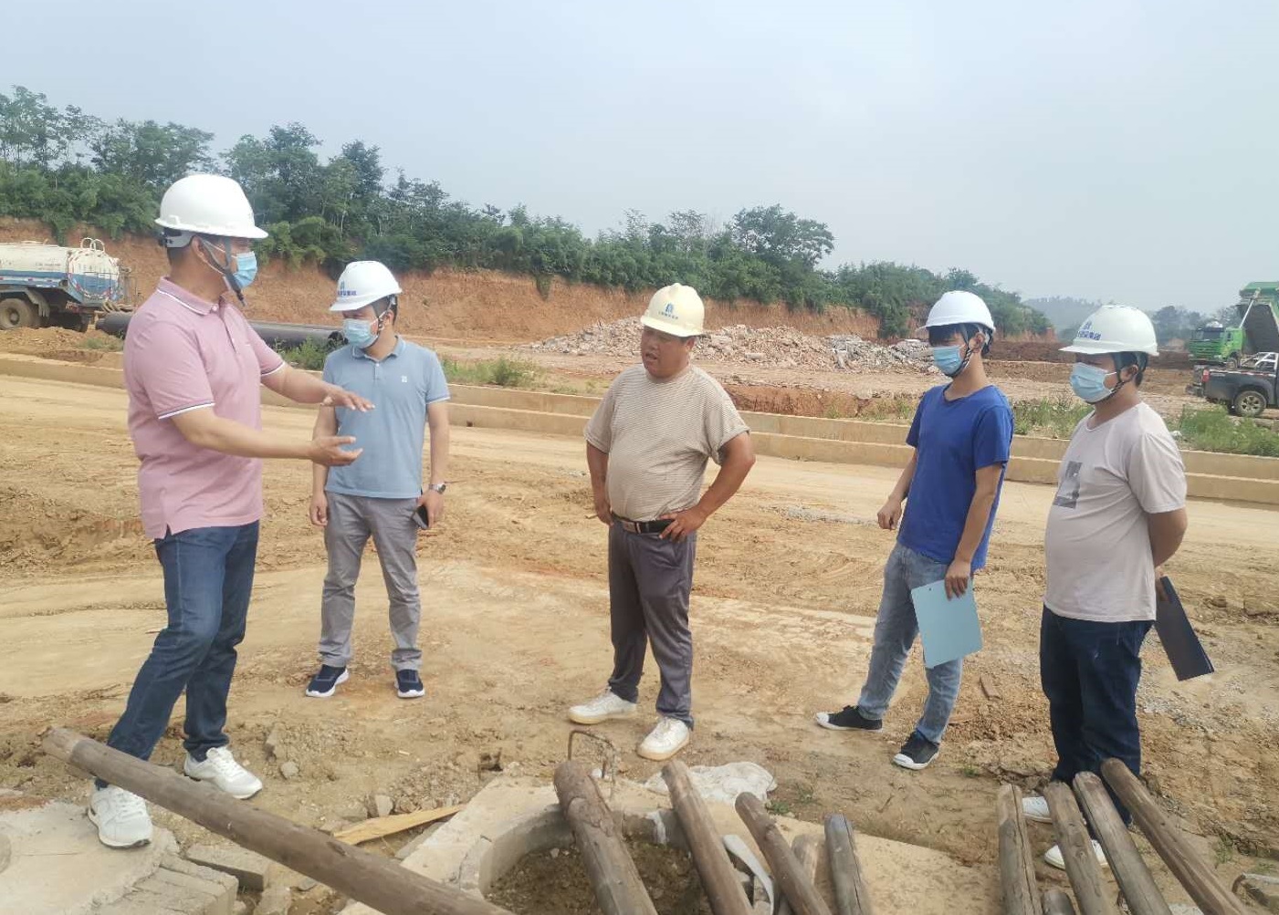 檢查結束后,徐副總對各項目管理工作提出五點要求:一要加強項目現(xiàn)場防疫管控力度,依舊不能放松警惕,特別是現(xiàn)場施工人員多且復雜,應當繼續(xù)嚴格認真落實當?shù)卣蟮姆揽嘏e措;二要加強安全教育,目前工程建設正處于高溫施工階段,又是施工的關鍵時期,安全工作務必要做實做細;三要加強質量管理,做好自檢、互檢工作,發(fā)現(xiàn)質量問題要立即整改,做到質量安全管理標準化、工程施工管理精細化;四要將現(xiàn)場安全文明施工做的更好更細,以將項目打造成安全文明示范工地為目標,樹立好集團公司品牌形象;五要抓施工管理進度,在確保質量過關、安全生產(chǎn)的前提下,切實加強施工組織管理,科學統(tǒng)籌安排施工順序,每月要根據(jù)施工進度重新倒排月計劃,掀起大干高潮,保質保量的完成施工任務。