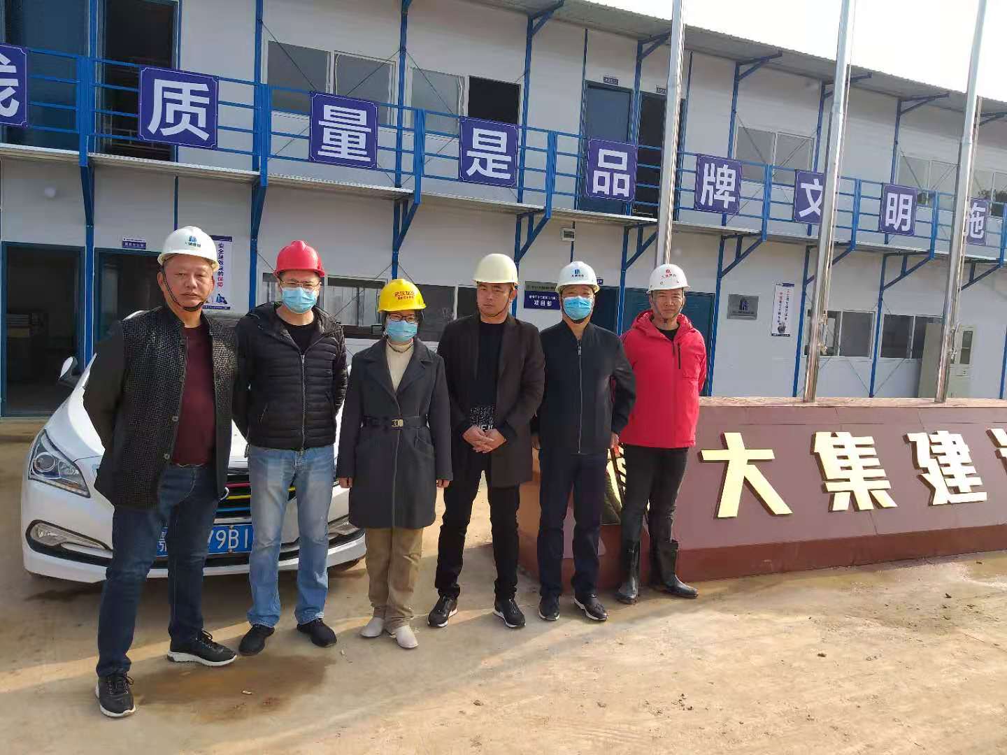 在大集G區(qū)蓮溪花園項目,徐副總一行首先在辦公區(qū)查看了工作環(huán)境,詳細了解目前項目的施工情況和進度,同時對項目現場安全防護、農民工宿舍等進行仔細檢查,并對項目安全、質量、進度和疫情防控工作給予充分肯定。