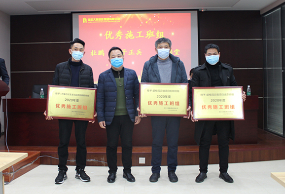 工程部部長余齊為優(yōu)秀項(xiàng)目施工班組頒獎(jiǎng)