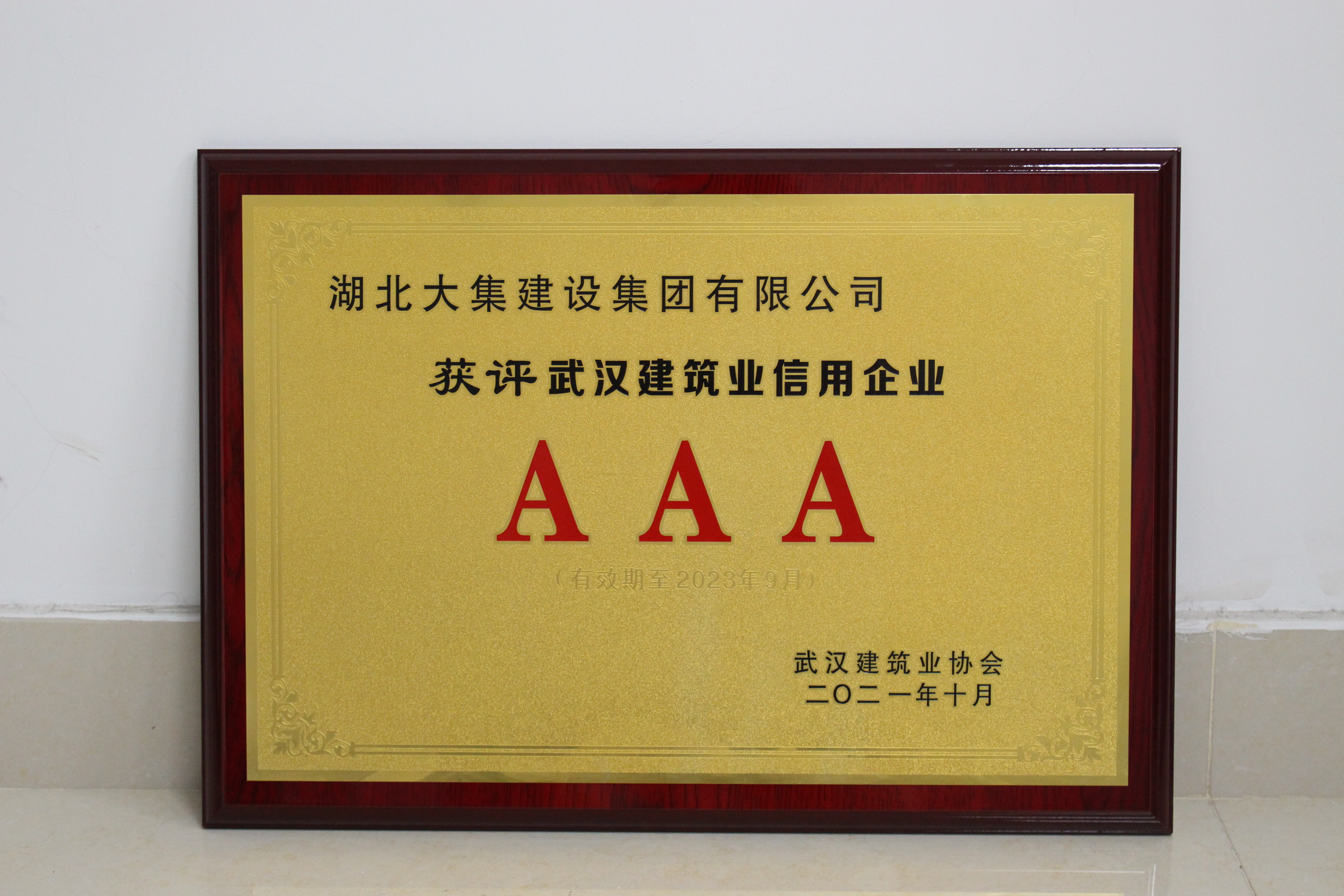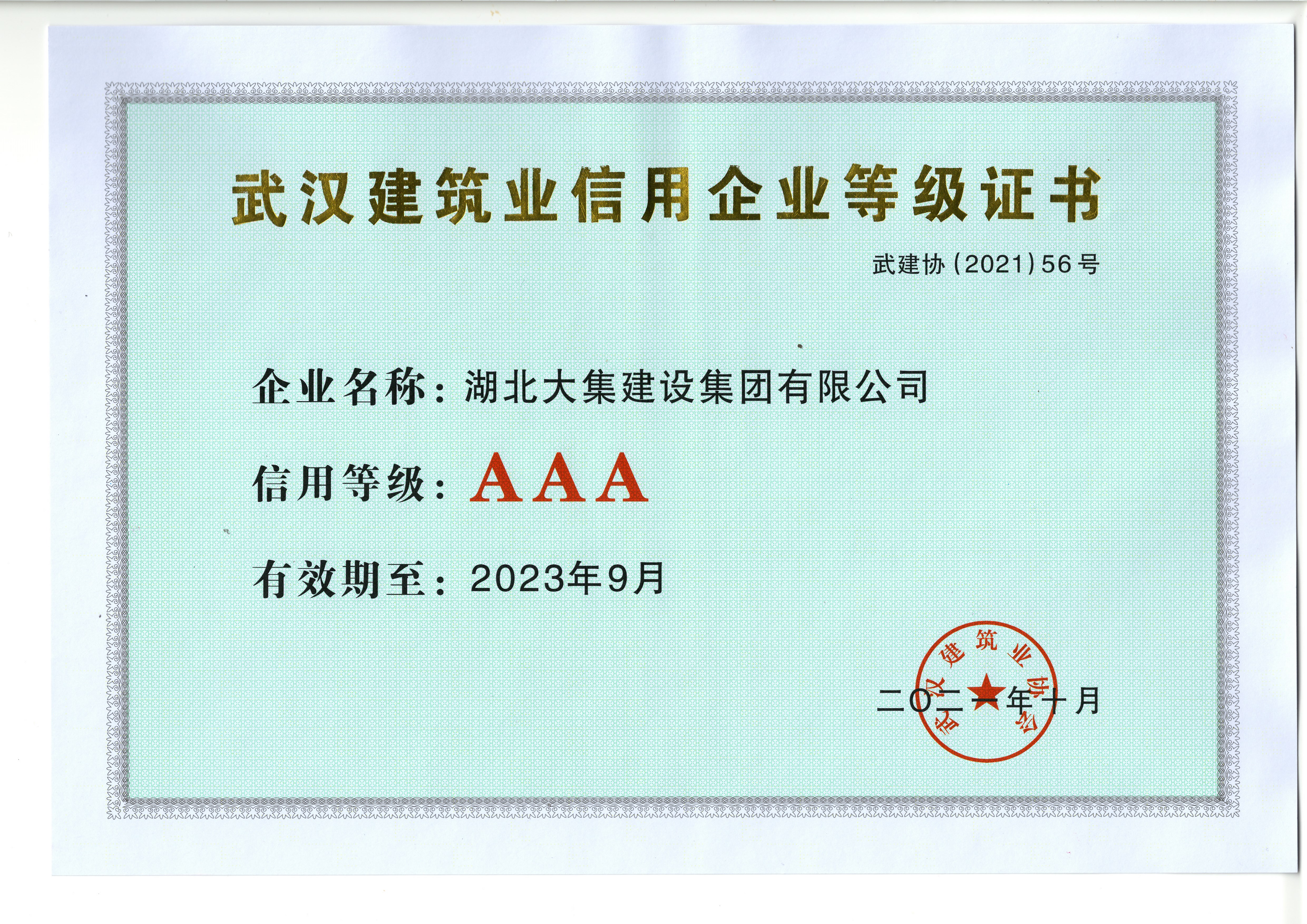 喜訊!湖北大集建設(shè)集團(tuán)再次獲評(píng)“武漢建筑業(yè)AAA信用企業(yè)”