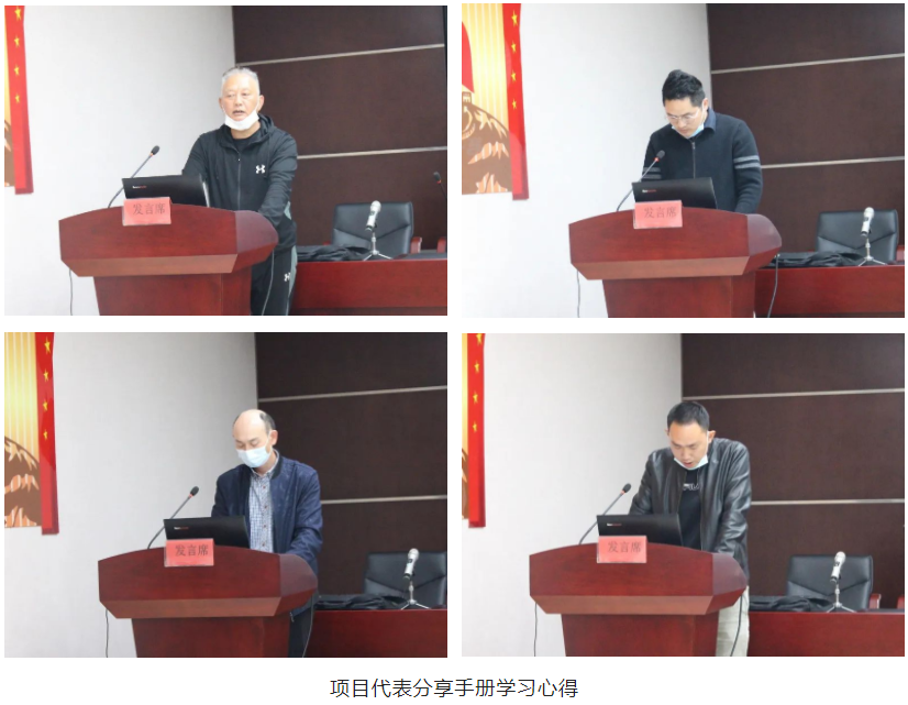 項(xiàng)目經(jīng)理代表周感書、房建施工員代表魏巍、房建安全員代表張彥偉以及市政施工員代表彭文杰依次上臺(tái),從不同角度分享了他們對(duì)《湖北省質(zhì)量安全手冊(cè)》的學(xué)習(xí)心得。