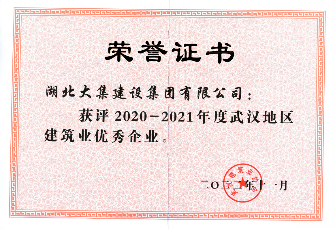 近日,武漢建筑業(yè)協(xié)會(huì)發(fā)布2020-2021年度武漢地區(qū)建筑業(yè)“四優(yōu)”選樹結(jié)果。湖北大集建設(shè)集團(tuán)憑借優(yōu)秀的綜合實(shí)力和扎實(shí)的管理水平,公司獲評(píng)“武漢地區(qū)建筑業(yè)優(yōu)秀企業(yè)”榮譽(yù),公司董事長徐濤榮獲“武漢地區(qū)建筑業(yè)優(yōu)秀企業(yè)家”稱號(hào)。