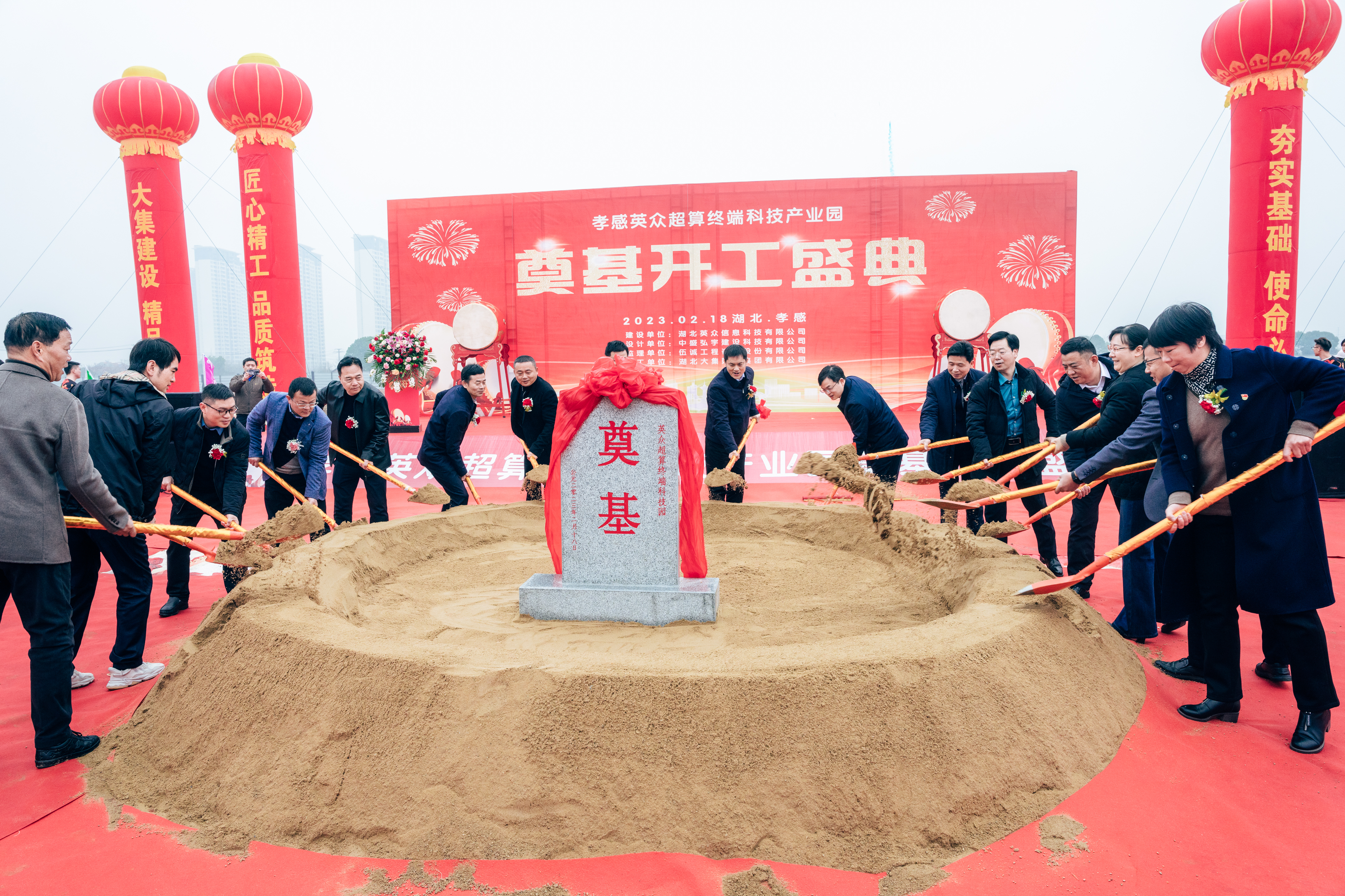 2月18日上午,由湖北大集建設(shè)集團(tuán)總承包的英眾超算終端科技產(chǎn)業(yè)園生產(chǎn)項(xiàng)目開(kāi)工儀式隆重舉行,孝感市委常委、統(tǒng)戰(zhàn)部部長(zhǎng)、高新區(qū)黨工委書(shū)記賀衛(wèi)東,高新區(qū)黨工委副書(shū)記、管委會(huì)主任舒俊,市委統(tǒng)戰(zhàn)部常務(wù)副部長(zhǎng)盛夏,高新區(qū)黨工委委員、紀(jì)檢監(jiān)察工委書(shū)記張文平等政府領(lǐng)導(dǎo),上海英眾信息科技有限公司兼湖北英眾信息科技有限公司總經(jīng)理劉純堅(jiān),上海英眾信息科技有限公司董事會(huì)秘書(shū)、副總經(jīng)理孫峰,湖北銘洛科技有限公司董事長(zhǎng)阮洋,以及集團(tuán)公司董事長(zhǎng)徐濤、總經(jīng)理徐遠(yuǎn)征、董事許江、副總經(jīng)理徐家富出席參加了奠基儀式。