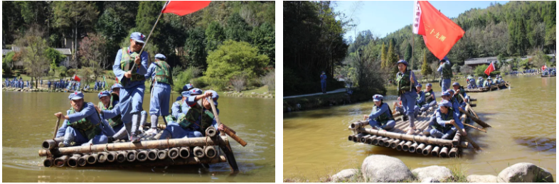 挺進領袖峰,在培訓教官的帶領下,學員們通過“重建紅軍部隊”、“搶渡大渡河”、“自做紅軍飯”等體驗教學,增強學員們團結協(xié)作、不怕吃苦、英勇頑強的精神。