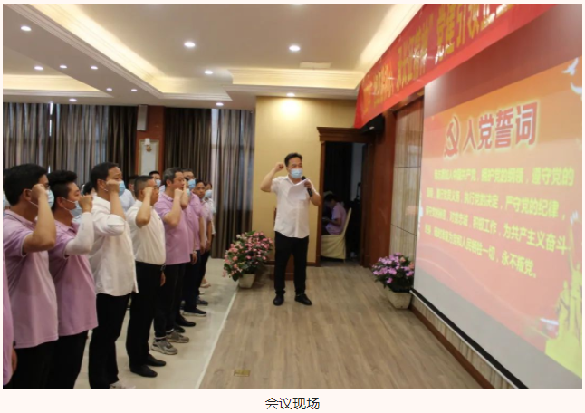 會議開始,湖北大集建設集團黨支部書記徐遠征同志帶領全體黨員重溫入黨誓詞。在徐遠征同志領誓下,全體黨員舉起右拳,莊嚴宣誓,鏗鏘有力的聲音,久久響徹耳邊,共同表達了不忘初心,牢記使命,永遠奮斗的堅定決心。