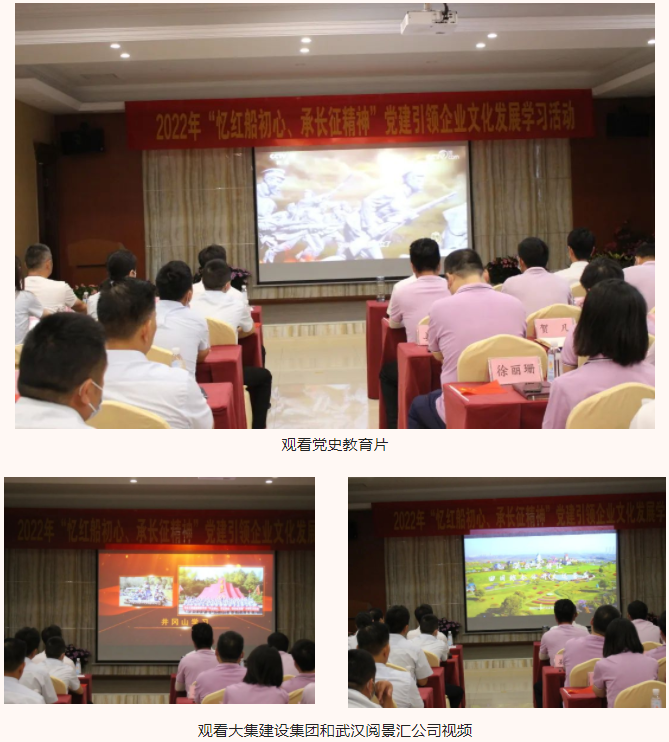 為慶祝建黨101周年,進一步推進黨史學習教育,增強隊伍凝聚力、向心力與戰(zhàn)斗力,湖北大集建設集團聯(lián)合武漢閱景匯公司于6月16日上午共同開展2022年“憶紅船初心,承長征精神”黨建引領企業(yè)文化發(fā)展學習活動,兩家公司的全體黨員、入黨積極分子以及中高層領導、優(yōu)秀骨干員工參加了學習,會議由湖北大集建設集團黨支部書記徐遠征主持。