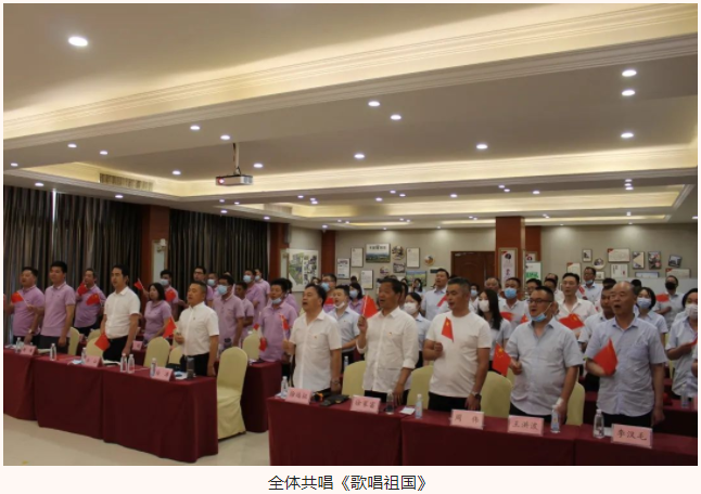 “五星紅旗迎風飄揚,勝利歌聲多么響亮;歌唱我們親愛的祖國,從今走向繁榮富強……”會議最后,全體起立,共唱《歌唱祖國》,用嘹亮的歌聲表達了對黨和祖國的無限熱愛和深深祝福。