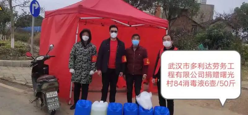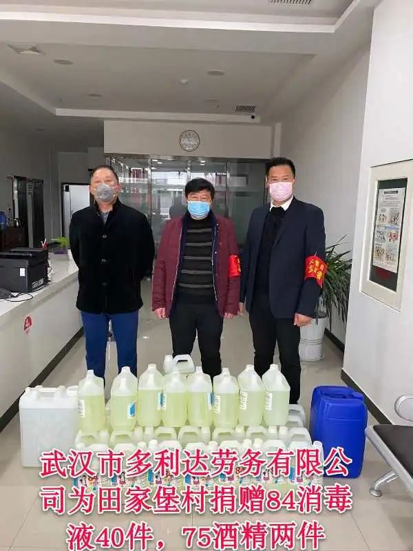 2、疫情形勢嚴峻,三位周總想法設(shè)法籌備40件84消毒液、兩大件酒精捐給田家堡村,采買300斤84消毒液捐贈給曙光村,用于支援抗疫工作;