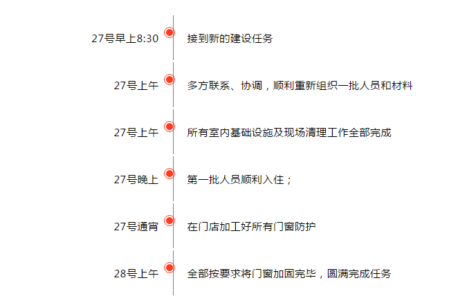 2月27日早上8:30,經(jīng)過一天一夜的奮戰(zhàn),王總帶領(lǐng)的項(xiàng)目團(tuán)隊(duì)順利交付施工任務(wù),獲得業(yè)主單位的高度贊揚(yáng),當(dāng)即授予我們第二批改造任務(wù)——方艙內(nèi)部床位布展及門窗加固工作。
