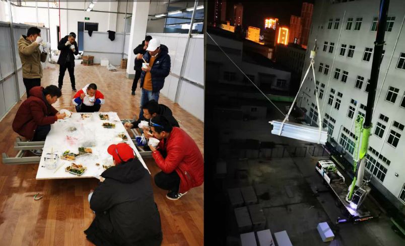 張?bào)艺f,方艙建設(shè)期間他學(xué)到了很多,更是看到了兩個(gè)人,一個(gè)是董事長(zhǎng),所有細(xì)節(jié)親力親為,現(xiàn)場(chǎng)作業(yè)面一天總要轉(zhuǎn)好幾遍,他都親自動(dòng)手搬運(yùn),積極主動(dòng)帶領(lǐng)大家一路向前,吃飯時(shí)也與大家一起因陋就簡(jiǎn),席地而坐,把奉獻(xiàn)精神做到了極致;另一個(gè)是周勝書周總,他的責(zé)任感值得大家學(xué)習(xí),在最累的時(shí)候,大家還會(huì)歇一下,可周總總是一個(gè)人沖在前面,最早一個(gè)來,最后一個(gè)走,包括材料組織,購(gòu)買,搬運(yùn),所有人的生活,現(xiàn)場(chǎng)的衛(wèi)生,所有收尾工作等等,所有的細(xì)節(jié)都考慮的十分全面,周總是真的把責(zé)任感做到極致的人!同時(shí),他也很感激團(tuán)隊(duì)中每一個(gè)人,因?yàn)楣と藰I(yè)務(wù)不熟練,很多材料又難以采買,團(tuán)隊(duì)中負(fù)責(zé)采購(gòu)的周鋒要跑遍很多市場(chǎng)才能采購(gòu)到足夠的材料,真的非常辛苦,但好在最終,所有人的積極配合和共同努力讓任務(wù)得以圓滿完成,他說,那一刻他自己都不敢相信,真的只剩下激動(dòng)!所以這場(chǎng)方艙建設(shè),對(duì)他來說收獲更多,因?yàn)檫@場(chǎng)經(jīng)歷他有了更多的責(zé)任感和奉獻(xiàn)精神,也親眼見證了團(tuán)結(jié)的力量!