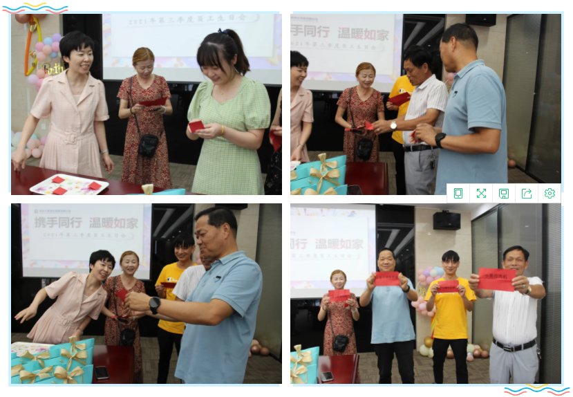 生日會(huì)簡短而熱烈,大家品嘗著香甜的蛋糕,不僅讓員工們?cè)诰o張繁忙的工作之余,享受活躍又溫暖的輕松時(shí)刻;同時(shí),也讓壽星們感受到了公司領(lǐng)導(dǎo)的關(guān)懷,感受到了集體的溫暖,進(jìn)一步增強(qiáng)了員工的集體榮譽(yù)感、歸屬感和責(zé)任心,增強(qiáng)了公司凝聚力。