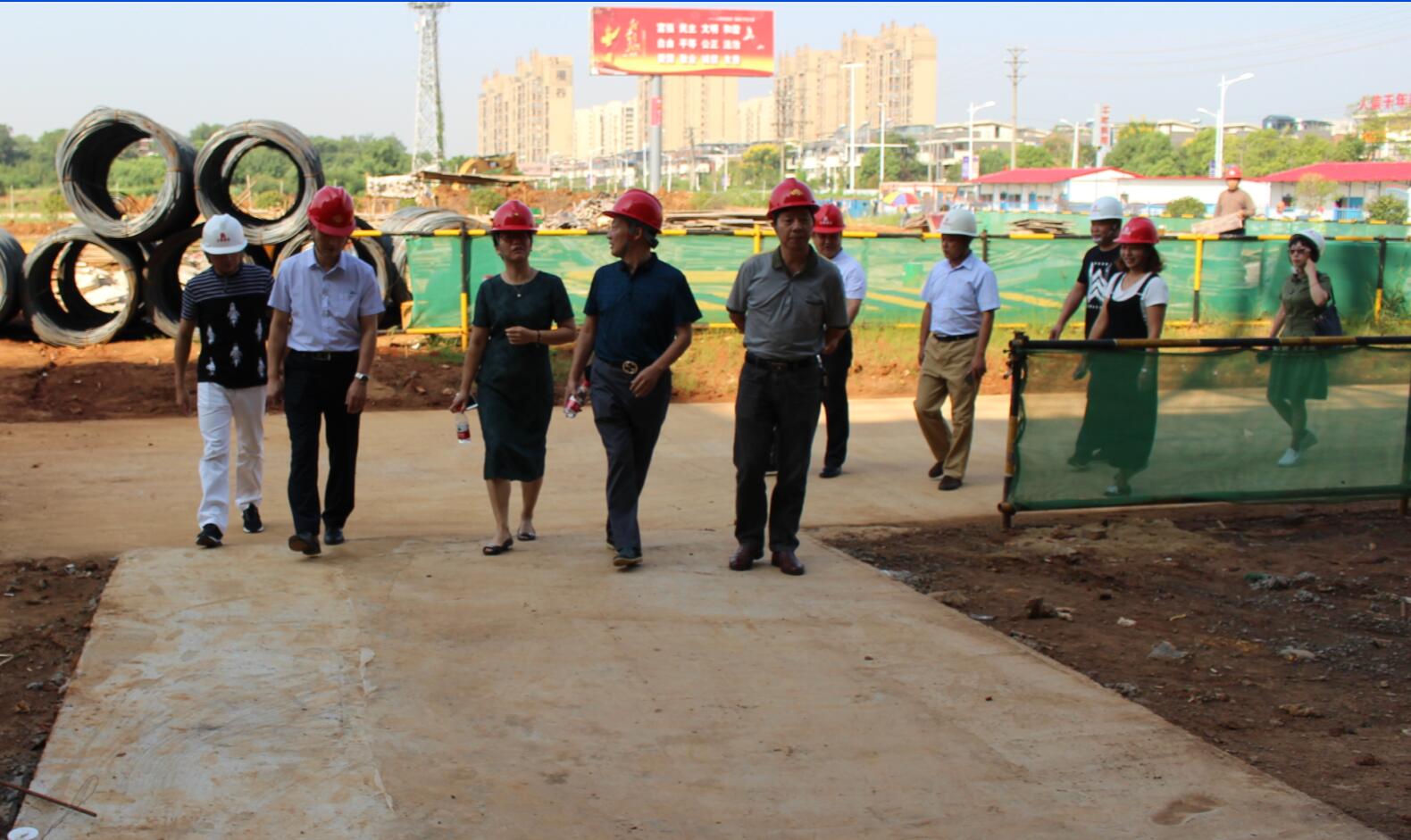 各級領(lǐng)導(dǎo)充分肯定了施工現(xiàn)場的標(biāo)準(zhǔn)化管理,詳細(xì)了解了該項目的基本情況和施工進度,并結(jié)合施工效果圖對在建的教學(xué)樓、體育場等施工現(xiàn)場進行考察督導(dǎo)。蔡甸區(qū)人大張主任親切地詢問了當(dāng)前施工過程中是否存在需要政府協(xié)調(diào)解決的困難,現(xiàn)場囑咐各級領(lǐng)導(dǎo)要積極協(xié)助給予支持,確保項目按期完成建設(shè)目標(biāo),為明年即將入學(xué)的廣大師生交上一份滿意的答卷!
