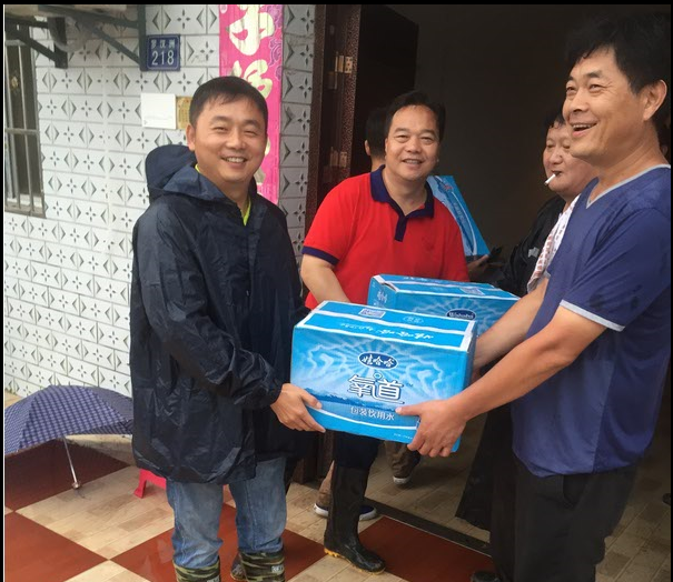 “天災(zāi)無情,人間有愛”。2016年7月19日,湖北大集建設(shè)集團有限公司在董事長徐濤和總經(jīng)理徐遠征率領(lǐng)下,副總經(jīng)理徐家富、項目經(jīng)理徐斌、梁前松等公司領(lǐng)導(dǎo)和骨干力量代表集團公司的心意冒雨來到了受災(zāi)嚴重的蔡甸區(qū)沉湖大堤。