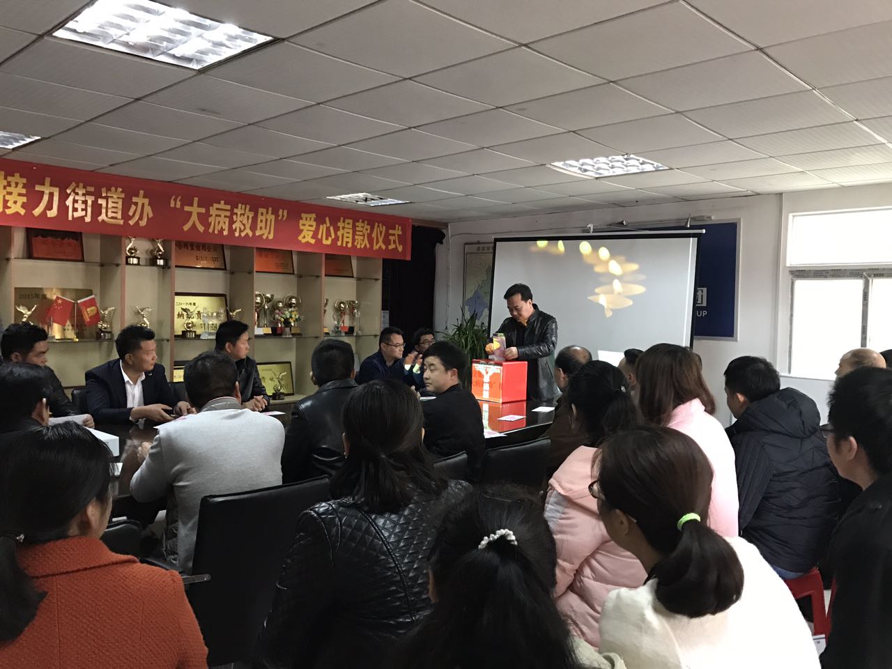 3月21日,湖北大集建設(shè)集團(tuán)響應(yīng)街道辦“大病救助”愛(ài)心捐款活動(dòng),在集團(tuán)總部舉行愛(ài)心捐款活動(dòng)儀式,陰沉的天氣并未阻擋大集人愛(ài)心奉獻(xiàn)的熱情,活動(dòng)現(xiàn)場(chǎng)人員爆滿(mǎn),熱情洋溢,公司領(lǐng)導(dǎo),項(xiàng)目經(jīng)理和各位員工積極響應(yīng)捐款倡議,踴躍參與,一時(shí)間原本寬敞的會(huì)議室被擠的水泄不通。