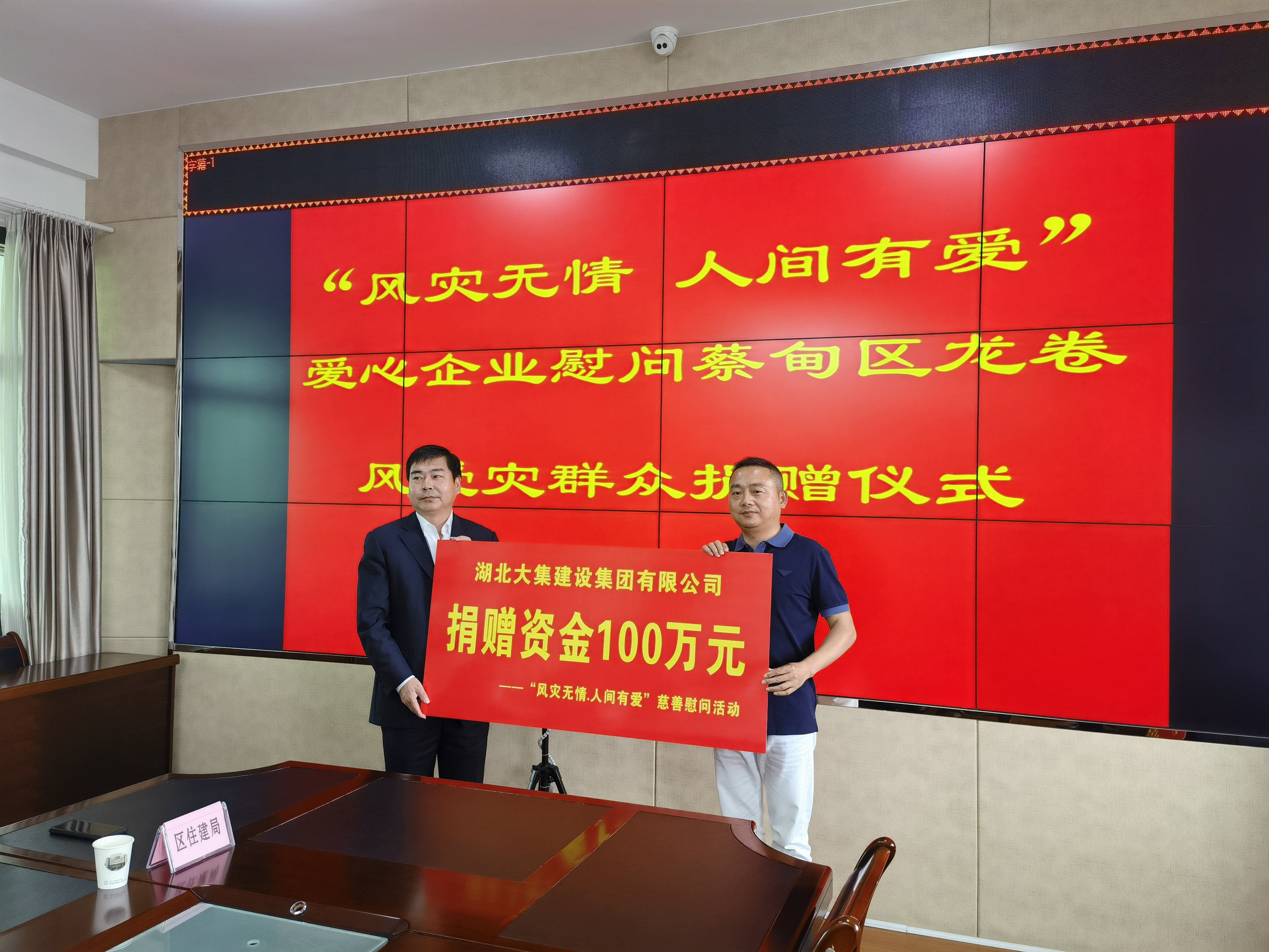 在捐贈儀式現(xiàn)場,徐濤董事長表示,一方有難,八方支援,能為災區(qū)人民盡一份綿薄之力,是我們湖北大集建設集團義不容辭的責任,希望這筆愛心款項能給災區(qū)人民帶來幫助,早日重建家園,恢復生產(chǎn)。